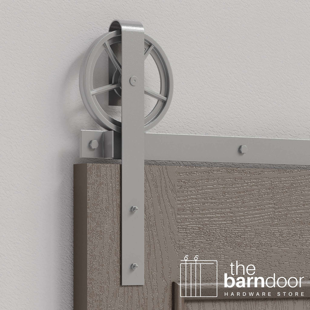 The Wagon Wheel Heavy Duty Sliding Barn Door Hardware Kit by Goldberg Brothers delivers commercial-grade performance with statement-making style. Built for doors that demand serious support, this American-made hardware confidently handles sliding doors up to 400 pounds—perfect for oversized solid wood doors, reclaimed lumber, and custom creations.