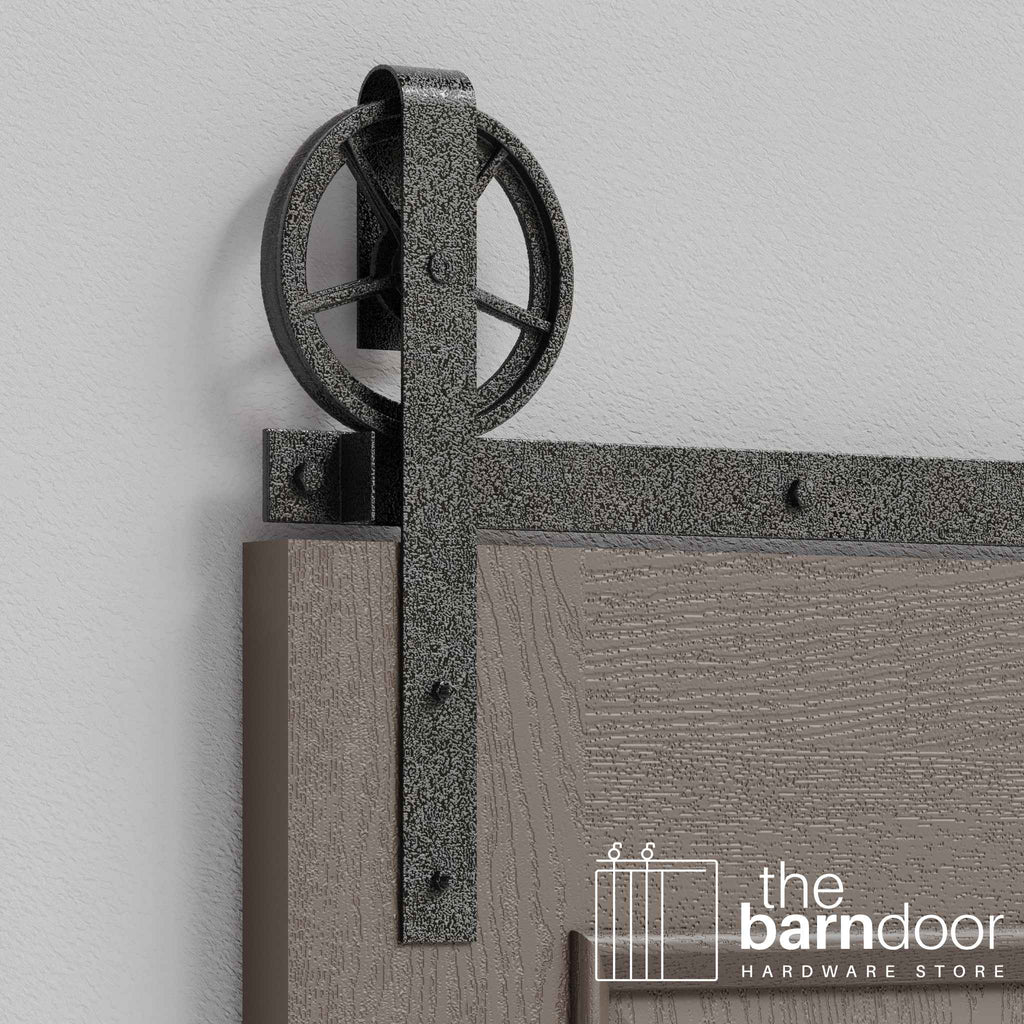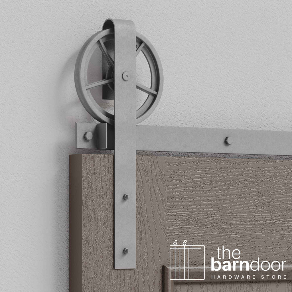 The distinctive wagon wheel rollers combine industrial strength with authentic rustic character, creating a bold focal point for residential spaces, commercial environments, and high-traffic applications. Precision-engineered for smooth, reliable operation, even your heaviest doors glide effortlessly along the heavy-duty 2-inch steel track.