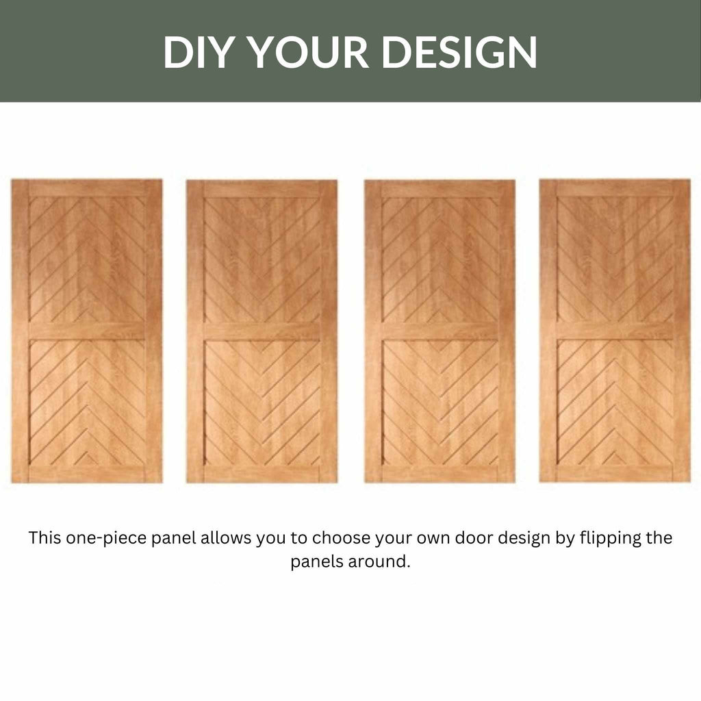 And here's the best part: this is a DIY barn door that includes everything you need to build your own sliding masterpiece. You get all the materials to assemble your solid wood door. Add your own personal touch with a stained finish to give your fishbone pine barn door a unique flair that perfectly complements any room's vibe.