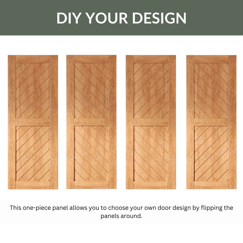 Imagine the compelling visual rhythm as your single door, graced with its eye-catching diagonal geometry, glides effortlessly across your space. The slanted panel design is a testament to bold, contemporary style, a distinctive detail that articulates your unique aesthetic, instantly setting your home apart from the mundane.